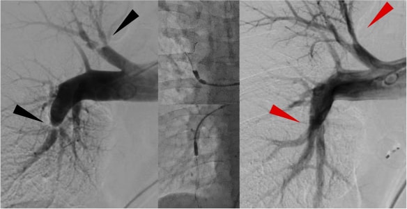 - 門脈圧亢進症にともなうPHの疑いがあれば肝静脈楔入圧と下大静脈圧差の測定